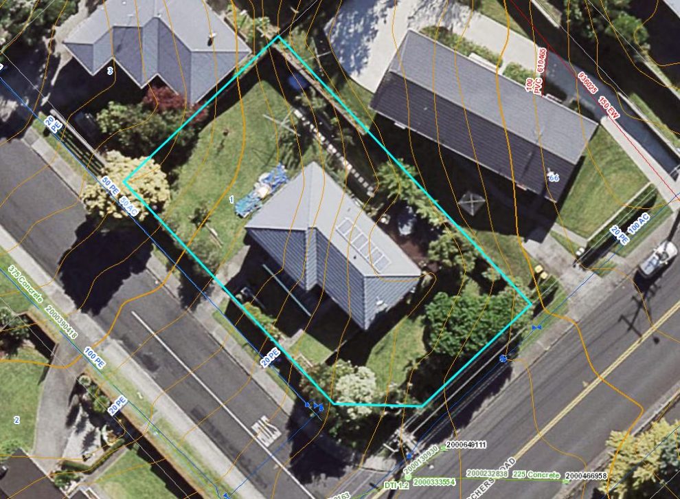 road and approximately 50 meters down the street. Stormwater is a big factor in Auckland and can be a deal breaker.