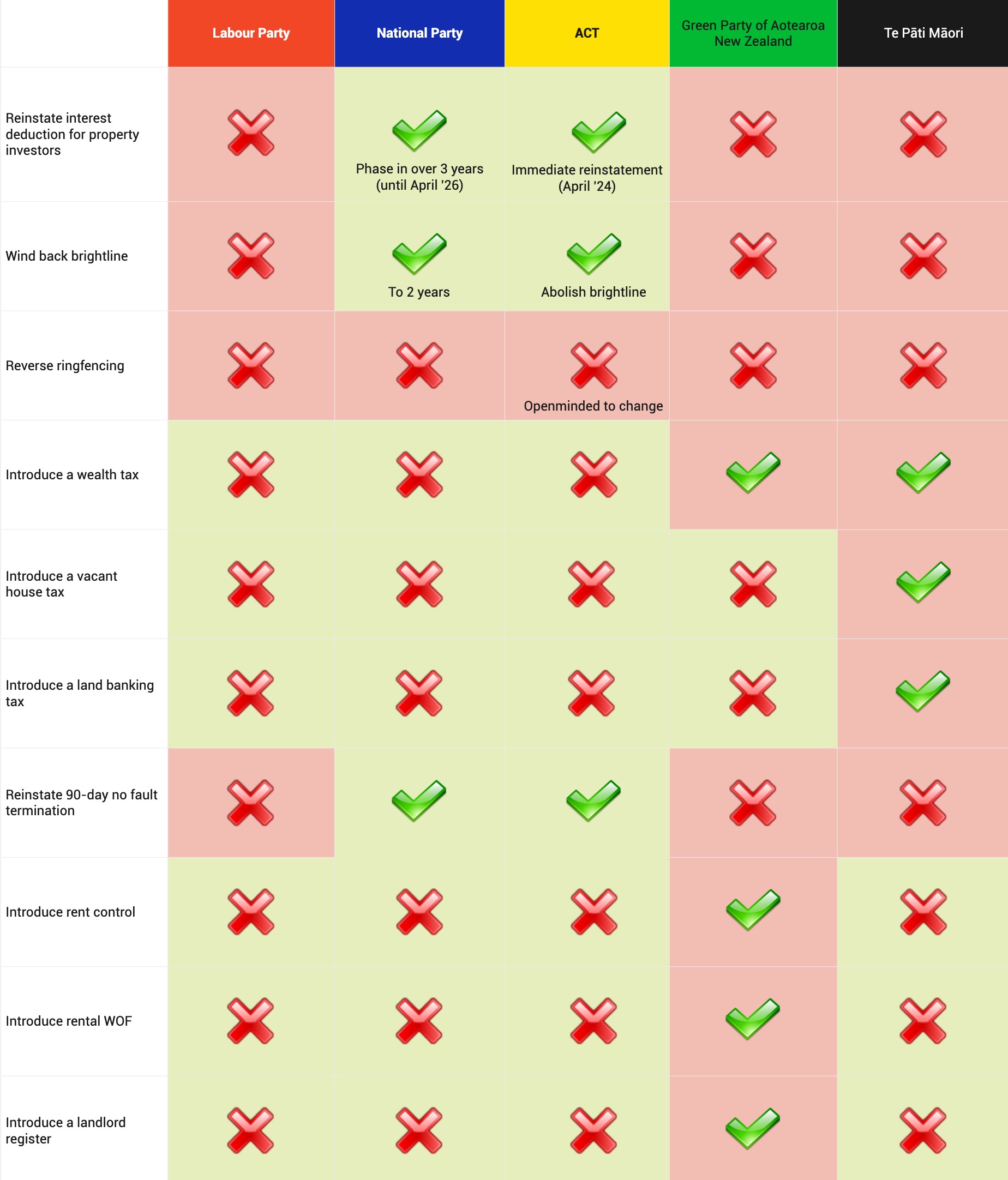 Here is a brief summary of each political party’s position on kitchen table issues concerning property investors/landlords. We have only accounted for the parties that are currently in Parliament.